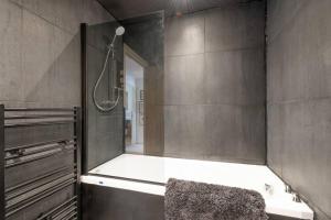 À l’intérieur, l’appartement comprend trois lits ainsi qu’une cheminée qui crée une atmosphère chaleureuse. Les hôtes peuvent préparer leurs repas dans le coin cuisine entièrement équipé avec four, plaques de cuisson, réfrigérateur, micro-ondes et lave-vaisselle ainsi que des installations pour préparer thé et café. Le logement propose également les indispensables tels que linge de lit, serviettes, chauffage, matériel de repassage incluant un fer ainsi qu’un bureau pour plus de confort.