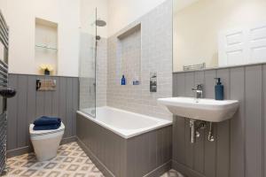 Luksusowy, odnowiony apartament z 1 sypialnią blisko St James - super centralny to nowoczesny lokal położony w centrum Edynburga, zaledwie 300 metrów od Royal Mile i niedaleko stacji Edinburgh Waverley. Goście mają do dyspozycji bezpłatne WiFi oraz pralkę. Apartament składa się z jednej sypialni z dwoma łóżkami i oferuje dogodny dostęp do najważniejszych atrakcji, takich jak Narodowe Muzeum Szkocji czy Zamek Edynburski.